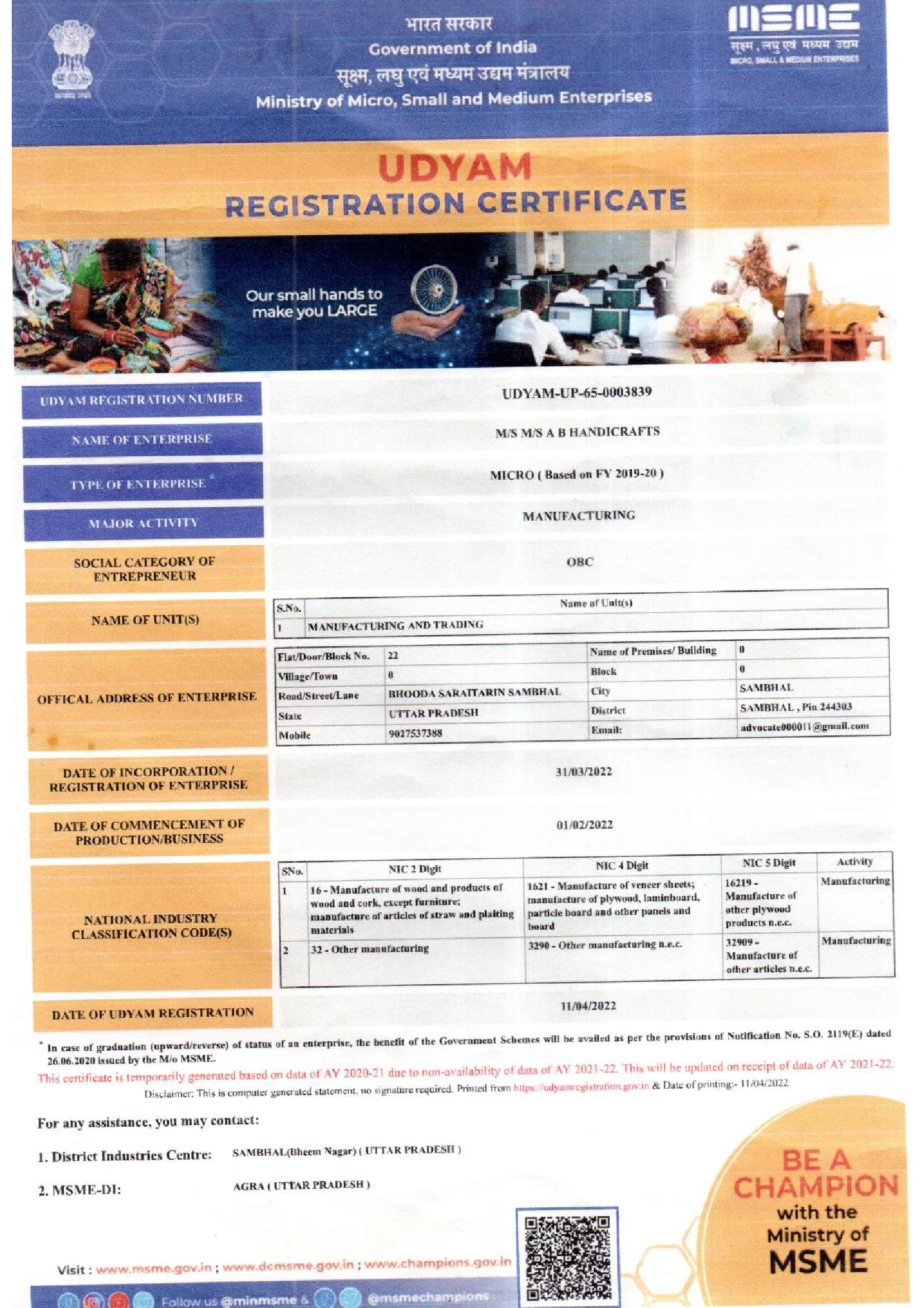 MSME Certificate